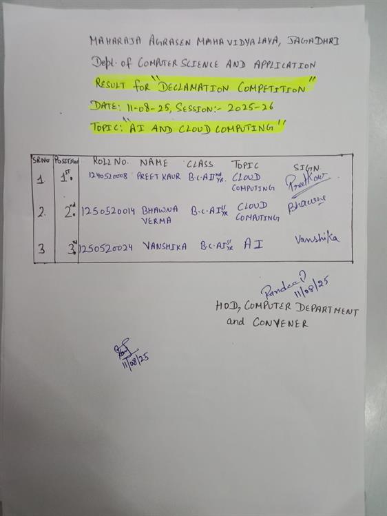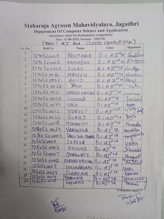 A DECLAMATION COMPETITION WAS ORGANIZED BY DEPARTMENT OF COMPUTER SCIENCE AND APPLICATION ON 11-08-2025.