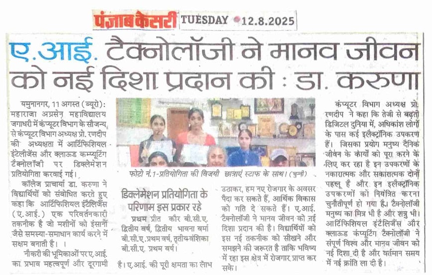 A DECLAMATION COMPETITION WAS ORGANIZED BY DEPARTMENT OF COMPUTER SCIENCE AND APPLICATION ON 11-08-2025.