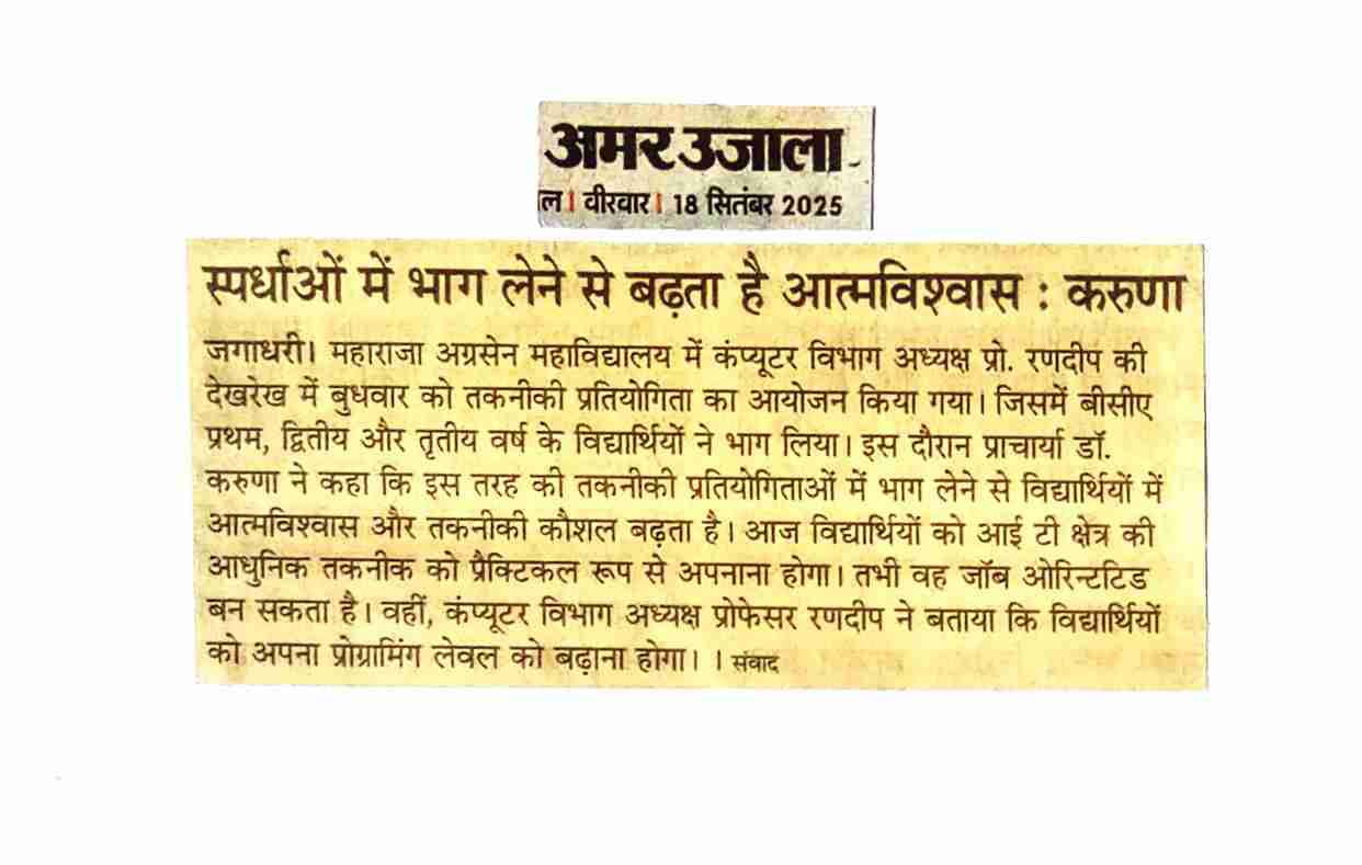 A “TECHNICAL QUIZ” WAS ORGANIZED BY DEPARTMENT OF COMPUTER SCIENCE AND APPLICATION ON 17-09-2025.